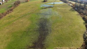 Natur Hunziken pflegt seit vielen Jahren eine enge Zusammenarbeit mit den Biberfamilien auf dem 43-Hektar-Naturgelände der Stiftung in Hunziken (Rubigen). Im Spätherbst 2025 nahm die Biberfamilie, die ihr Revier in der Nähe des Herrenhauses hat, einen riesigen Planungsschritt von Natur Hunziken vorweg: eine grossflächige Revitalisierung der Parzelle 624 ab Schwarzbach in östlicher Richtung. Diese grosse Wirkung erzielten die „Baumeister mit Biss“ mit nicht allzu grossem Aufwand: die Biberfamilie erweiterte ihren Damm beim Zusammenfluss zweier Bäche seitlich um einige Meter und erhöhte ihn um ca. 50 bis 65 cm. Zusätzlich grub sie Richtung Süden einen Kanal durch die Böschung in die offene Landschaft hinaus – und überschwemmte diese grossflächig.